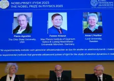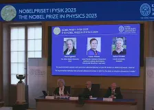 Nobelova cena za fyziku 2023 stručně a jasně aneb Co vše lze stihnout během attosekundy4.October » inSmart.cz Nedávno udělené Nobelovy ceny za fyziku sice znají své laureáty již dále, na předání ocenění však došlo teprve nyní. Za co si trojice odborníků vysloužila uznání výboru udělujícího nejprestižnější ocenění v rámci (nejen) fyzikálních věd? Nobelovou c… Nobelovu cenu za fyziku získali tři vědci. Attosekundové světelné pulsy otevřely dveře do nitra elektronů4.October » VTM V úterý 3. října se udělovala Nobelova cena za fyziku – jedno ze šesti prestižních ocenění, které je uznáním průkopnického přínosu jednotlivce nebo organizace v určitém oboru. Získali ji tři vědci – Pierre Agostini, Ferenc Krausz a Anne Nobelova cena za fyziku: tři vědci a zpomalený pohled dovnitř atomu3.October » Deník N Otázka, jak doopravdy vypadá atom, byla donedávna naivní. Nijak, zněla odpověď, zapomeňte na názornou představu. Pokroky fyziky však tuto ustálenou pravdu stále více nahlodávají. Nobelovu cenu za fyziku dostali tři vědci za výzkum elektronů3.October » EuroZprávy.cz Nobelova cena za fyziku pro rok 2023 byla udělena třem vědcům za jejich práci v oblasti využití extrémně krátkých světelných pulzů k studiu chování elektronů v atomech a molekulách. Laureáty jsou francouzsko-americký vědec Pierre Agostini, Rakušan m… Nobelovu cenu za fyziku dostali vědci, kteří dokázali zachytit nejkratší okamžiky3.October » E15.cz Nobelovu cenu za fyziku pro rok 2023 získali Pierre Agostini, Ferenc Krausz a Anne L'Huillierová za využití extrémně krátkých světelných pulzů ke studiu chování elektronů v atomech a molekulách. Jejich práce může přispět k rozvoji lékařské diagnosti… Nobelova cena za fyziku zná své letošní vítěze. Získalo ji trio, které zkoumá elektrony3.October » REFRESHER Nobelovu cenu za fyziku pro rok 2023 získala dvojice vědců a jedna vědkyně, kteří využívají lasery ke studiu v atomech a molekulách. Oznámení přinesla Královská švédská akademie věd. Nobelovou cenou za fyziku oceněni vědci zkoumající elektrony v záblescích světla3.October » Nedd Trojice vědců, která otevřela dveře do světa elektronů a jejíž výzkum umožnil zkoumat jevy tak rychlé, že je dříve nebylo možné sledovat, si odnáší letošní Nobelovu cenu za fyziku. Nobelova cena za fyziku: Tři vědci dali lidstvu nové nástroje pro zkoumání světa elektronů uvnitř atomů a molekul3.October » Český rozhlas Plus Nobelovu cenu za fyziku pro letošní rok získala trojice vědců za využití laserů ke studiu elektronů v atomech a molekulách. Nobelovu cenu za fyziku má trojice vědců za inovativní výzkum elektronů3.October » Echo24.cz Nobelovu cenu za fyziku pro rok 2023 získali francouzsko-americký vědec Pierre Agostini, Rakušan maďarského původu Ferenc Krausz a Francouzka působící ve Švédsku Anne L'Huillierová za využití extrémně krátkých světelných pulzů ke studiu chování elek… Nobelovu cenu za fyziku má trojice vědců za využití světelných pulzů ke studiu chování elektronů3.October » Český rozhlas Nobelovu cenu za fyziku pro rok 2023 získali francouzsko-americký vědec Pierre Agostini, Rakušan maďarského původu Ferenc Krausz a Francouzka působící ve Švédsku Anne L'Huillierová za využití extrémně krátkých světelných pulzů ke studiu chování elek… Nobelovu cenu za fyziku má trojice vědců za inovativní výzkum elektronů3.October » Lidovky.cz Nobelovu cenu za fyziku pro rok 2023 získali francouzsko-americký vědec Pierre Agostini, Rakušan maďarského původu Ferenc Krausz a Francouzka působící ve Švédsku Anne L’Huillierová za využití extrémně krátkých světelných pulzů ke studiu chování elek… Nobelova cena za fyziku ocenila nové nástroje pro zkoumání světa elektronů3.October » Novinky.cz V úterý oznámila Královská švédská akademie věd jména letošních laureátů Nobelovy ceny za fyziku. Francouzsko-americký vědec Pierre Agostini, Rakušan maďarského původu Ferenc Krausz a Francouzka působící ve Švédsku Anne L'Huillierová byli oceněni za… |
