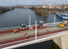 Obrazem: Dvorecký most už získal finální povrch. Ozdobila ho červenohnědá asfaltová směs