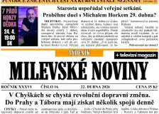 Velbloudice Frída z táborské zoo získala novou kamarádku. Přijela z Dánska19:01 » Jihočeské týdeníky TÁBOR - Z Dánska přicestovala do táborské zoologické zahrady samice velblouda dvouhrbého Amara. Bude dělat společnost samici Frídě, která už v táborské zoo žije déle. The post Velbloudice Frída z táborské zoo získala novou kamarádku. Přijela z Dánsk… Jihočeský kraj otestoval krizovou komunikaci v případě výpadku elektřiny18:29 » Jihočeské týdeníky JIŽNÍ ČECHY- Jihočeský kraj v sobotu 18. dubna společně s Armádou ČR a radioamatéry prověřil náhradní způsob komunikace krizových štábů pro případ rozsáhlého výpadku veřejných telekomunikačních sítí. Cvičení Ardos Region 2026 simulovalo situaci, kdy… Rekordní účast na blatenské literární soutěži. Letošním tématem byl domov17:25 » Jihočeské týdeníky BLATNÁ – Slavnostní vyhlášení vítězů literární soutěže Světy na papíře hostila v sobotu 19. dubna kavárna komunitního centra v Blatné. Soutěž pro mladé spisovatele a ilustrátory ze Strakonicka pořádala potřetí Kulturní Plantáž v Blatné. Hlavním téma… Další prodejna v potížích. Radnice řeší budoucnost obchodu v České Olešné16:53 » Jihočeské týdeníky ČESKÁ OLEŠNÁ / STRMILOV – Seriál uzavírání jihočeských venkovských prodejen pokračuje ve vsi nedaleko Strmilova na Jindřichohradecku. Družstvo COOP Havlíčkův Brod vyhodnotilo jako nerentabilní provoz v České Olešné. Protože jde o místní část města S… Policie pátrá po autě, které zmizelo z ulice v Plané nad Lužnicí16:21 » Jihočeské týdeníky PLANÁ NAD LUŽNICÍ - Policie vyhlásila pátrání po stříbrném vozidle značky Škoda Fabia Combi, registrační značky 5C1 4965, které někdo ukradl v neděli 19. dubna večer v Plané nad Lužnicí. The post Policie pátrá po autě, které zmizelo z ulice v Plané … Písek odstartoval stavbu nové sportovní haly15:16 » Jihočeské týdeníky PÍSEK - V Písku se začala stavět nová sportovní hala ve vnitrobloku mezi ZŠ J. K. Tyla a obloukovou halou TJ Sokol. Stane se zázemím pro míčové sporty a využívat ji budou i žáci místních škol. Bude v ní hrací plocha o rozměrech 40x20 metrů, zázemí p… Fotbal: Porážka Dynama B s lídrem. Na Složišti se hrálo podle kladenských not14:45 » Jihočeské týdeníky ČESKÉ BUDĚJOVICE – Vedoucí Kladno přijelo na jih Čech den před zápasem, ubytovalo se na Hluboké a na tahák kola proti Dynamu B se vyspalo evidentně dobře. Umístění v třetiligové tabulce potvrdilo jak výkonem, tak výsledkově. Domácí béčko poprvé na j… Zavraždím svého příbuzného, volal naštvaný muž policistům14:11 » Jihočeské týdeníky JINDŘICHOHRADECKO - Jsem na cestě ke svému příbuznému, kterého zavraždím. A popíšu vám, jak to udělám. Tak by se dal jednou větou shrnout obsah telefonátu na linku 158, který zalarmoval ve čtvrtek 16. dubna večer policii na Jindřichohradecku. The po… Literární stezka, autorské čtení i knižní swap. Den knihy oslaví v Ševětíně celotýdenními akcemi14:11 » Jihočeské týdeníky ŠEVĚTÍN - V Ševětíně v pondělí 20. dubna začal týdenní program ke Světovému dni knihy. Až do neděle 26. dubna mohou lidé vyrazit na literární stezku, navštívit autorské čtení nebo si vyměnit knihy. Akce propojuje čtení s pobytem venku a komunitním s… Literatura ožije v Budějovicích. Mezinárodní festival startuje už dnes večer12:35 » Jihočeské týdeníky ČESKÉ BUDĚJOVICE – Město se na týden promění v otevřenou literární scénu. V pondělí 20. dubna začíná již 14. ročník festivalu Literatura žije!, který nabídne desítky akcí napříč Budějovicemi – od autorských čtení přes debaty až po koncerty nebo slam… Policejní zátah na diskotéce v Malenicích odhalil opilé děti i řidiče11:31 » Jihočeské týdeníky VOLYŇSKO - Sedm návštěvníků pod 18 let a jeden řidič pod vlivem alkoholu. To je výsledek policejního zátahu, při němž vyrazili v pátek 17. dubna policisté společně s hasiči na kontrolu diskotéky v Malenicích na Strakonicku, kterou navštěvují stovky … Fotbal: 7. liga řádila naplno. Debakly padly ve všech skupinách, nejtvrdší ránu schytala Čížová11:31 » Jihočeské týdeníky JIŽNÍ ČECHY - O víkendu od pátku 17. do neděle 19. dubna nabídly jihočeské krajské soutěže další porci jednoznačných výsledků. Do tradičního přehledu jsme znovu zařadili utkání, která skončila rozdílem čtyř a více branek. Nejvíce živo bylo již tradi… |