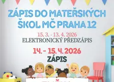 Pravidelná brožura „Mateřské školy v Praze 12 – Přijďte se podívat!“15:06 Vážení rodiče a zákonní zástupci, upozorňujeme na změnu termínů zápisu do mateřských škol pro školní rok 2026-2027. Změna souvisí s poslední novelou školského zákona. Pravidelná brožura „Základní školy v Praze 12 – Přijďte se podívat!“15:06 Vážení rodiče a zákonní zástupci, upozorňujeme na změnu termínů zápisu do základních škol pro školní rok 2026-2027. Změna souvisí s poslední novelou školského zákona. Informační zpravodaj PID č. 12/202514:31 Trvalé změny PID k 14. 12. 2025; Vánoční zastávka na Andělu; Zprovoznění stanice metra Pankrác 19. 12.; Vánoční Pražský motoráček 20. 12.; Provoz PID během vánočních a novoročních svátků; Poloprázdninový provoz PID v lednu a únoru 2025; Nový Tarif PID od 1. 1. 2026; Trvalé změny PID v lednu 2026; PID Haló získalo ocenění Czech Smart City Awards 2025; Pěší trasa z Václavského náměstí na Výstaviště… Bytový dům Modřanská - nový projekt12.prosince Mateřská škola Mydlinky (r. 2023)12.prosince |