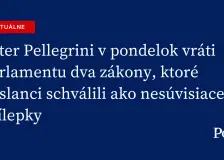 O prečerpávačke Málinec-Látky sa už toho napísalo veľa.20:09 Jednou stránkou veci sú technické výkresy, politické či biznisové zámery, vyhlásenia a právne prekáračky. Druhou sú živí ľudia na Čechánkach, ktorým hrozí, že prídu o svoj majetok, budú musieť opustiť svoje domovy, miesto, kde vyrástli a odkiaľ pochádzajú aj ich predkovia. Že budú vytrhnutí aj s koreňmi a ich dedovizeň zmizne pod vodami umelej priehrady. Ak niekto dominuje politickej scéne tak dlho ako predseda Smeru, aj ľudia z jeho vlastného názorového tábora začnú časom volať18:00 Nehovoriac o mladších voličoch. Generácia, ktorá politiku začala vnímať v čase, keď bol Fico už dávno dominantnou postavou verejného priestoru, v ňom sotva uvidí niečo nové, svieže alebo zaujímavé. Píše Jozef Majchrák. Rozhodnutie mať či nemať deti nevzniká vo vákuu v hlave jednotlivca.16:24 Médiá a verejný diskurz vytvárajú atmosféru, v ktorej sa jednotlivci rozhodujú. Ak sa o deťoch píše len ako o „zážitkoch“, „nákladoch“ a „stresoroch“, mladé rodiny prirodzene strácajú optimizmus. A bez základného optimizmu a istého spoločenského ideálu to nejde. Píše Zuzana Hanusová. Voľby by vyhralo PS so ziskom 20,8 percenta hlasov, druhý by skončil Smer s podporou 17,8 percenta.15:52 Nasledoval by Hlas so ziskom 8,9 percenta hlasov. Vyplýva to z prieskumu agentúry AKO pre televíziu Joj 24. Do parlamentu by sa dostali aj SaS (8,2 percenta), Republika (8 percent) a Hnutie Slovensko (7,7 percenta). Hranicu zvoliteľnosti by prekročili aj KDH (7,6 percenta) a Demokrati (6 percent). Minister investícií Samuel Migaľ intenzívne zvažuje kandidatúru na post prešovského župana,13:44 uviedli z odboru komunikácie jeho ministerstva. Ako doplnili, svoje rozhodnutie prijme po dôkladnom zvážení všetkých okolností a verejnosti ho oznámi v najbližšom období. Vo Vysokých Tatrách zahynul poľský turista.13:11 „Dvojica poľských turistov mala v pláne vystúpiť na Ľadový štít. Pri postupe snehovým poľom došlo k výpadku jedného z dvojice a pádom približne 200 metrov utrpel devastačné poranenia nezlučiteľné so životom,“ informuje Horská záchranná služba. Samosprávy vyzývajú poslancov na urýchlenú úpravu ústavného zákona o rozpočtovej zodpovednosti.12:39 Varujú, že bez vyňatia samospráv zo sankčných mechanizmov dlhovej brzdy nebude možné zostaviť ich rozpočty na roky 2027 až 2029 a ohrozené budú aj základné služby pre obyvateľov. Od konca marca sa sucho pôdy na Slovensku výrazne zhoršuje, najbližších desať dní sa očakáva ešte jeho prehĺbenie.11:03 Podobný trend výskytu sucha v jarných mesiacoch zaznamenávajú meteorológovia niekoľko rokov po sebe, informuje SHMÚ. Andrej Danko vykázal z rokovania parlamentu Zuzanu Mesterovú z PS.11:03 Poslanci rokujú o zrušení voľby poštou zo zahraničia. Šéfka poslaneckého klubu PS priniesla do rokovacej sály petičné hárky proti rušeniu voľby. Podľa Danka porušila rokovací poriadok, lebo išlo o vizuálne pomôcky. Poslanci neboli uznášaniaschopní ani pri piatkovom pokuse o otvorenie mimoriadnej schôdze o odvolávaní ministra vnútra Matúša Š8:22 Ráno po 8.00 h pri pokuse začať rokovanie sa prezentovalo v rokovacej sále len 54 poslancov. O návrhu na odvolanie šéfa rezortu vnútra sa pokúsia opätovne rokovať o hodinu. Republiková rada SaS jednohlasne vylúčila Janu Bittó Cigánikovú23.dubna zo strany. Dôvodom je „dlhodobé očierňovanie SaS v médiách“ či to, že otvorene hovorila o prechode k Borisovi Kollárovi, o spolupráci s Tomášom Tarabom či o odchode na iné kandidátky. Dovolací rozsudok v kauze Dušana Kováčika nabúra právnu istotu23.dubna , vyhlásil poslanec za PS Branislav Vančo. O bývalom špeciálnom prokurátorovi hovoril ako o odsúdenom korupčníkovi. Tibor Gašpar zo Smeru Kováčika požiadal, aby na Vanča podal civilnú žalobu. Opozícia vyzýva vládu, aby sa zapojila do koalície pre návrat ukrajinských detí23.dubna a pripojila sa k Medzinárodnej reparačnej komisii. „Z EÚ v tejto koalícii už chýba len Cyprus, Maďarsko a Slovensko. Považujeme to za škandál a morálny pád. Je to obrovská chyba,“ skonštatoval Branislav Škripek (KDH). Hlas padá, opozičné strany sú spolu na 50 percentách23.dubna . Vedie Progresívne Slovensko s 19,2 percentami. Smer by v apríli volilo 17,4 percenta ľudí, čo je o 2,6 percenta menej než v marci. Jana Bittó Cigániková uviedla, že ak „nie je dosť dobrá pre stranu“, nebude ani pre klub.23.dubna O ďalšom pôsobení poslankyne má rozhodnúť Republiková rada SaS, ktorá rokuje o návrhu na jej vylúčenie. |