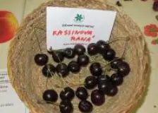 Třešeň ptačí - Prunus avium Kassinova raná Synonyma: Kassins Frühe, Kassins frühe Herzkirsche Čeleď: Rosaceae - růžovité Skupina: srdcovky Plod je velký, černý, asi 2, cm vysoký a 2,3 cm široký, 10 plodů váží okolo 58 g. U stopky je tvar zploštělý, jinak je pěkně pravidelný, pouze z jedné strany málo stlačený. Po této straně se táhne znatelná, hluboká rýha, která ...